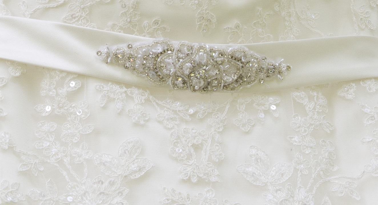 Don’t be afraid to source your own embellishments if you want to add that extra something. Bridal shops can be very expensive for these kind of extras – belts, hair combs, cuffs and the like. Don’t go so low-end that you cheapen the dress, but it’s worth scouring Ebay and the like to see what’s on offer. You could very easily pick up a little diamante brooch and then buy some material in a haberdashery shop and marry (pardon the pun) the two into a gorgeous belt – if you do end up getting alterations just ask the dressmaker to sew the belt into the dress for you too – you don’t want to risk that bit yourself!